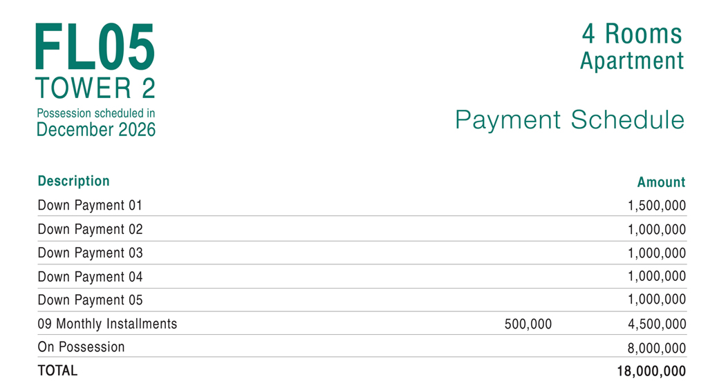 A serene and peaceful environment that encapsulates an urban lifestyle with high class facilities along with 4 and 5 room luxury apartments located in the heart of the city.