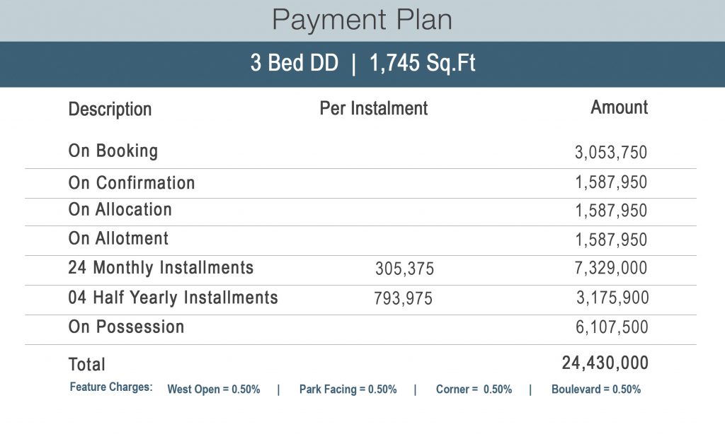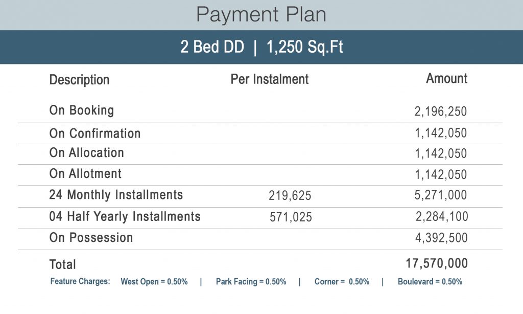 Central location in Naya Nazimabad | Natural ventilation due to four side open | All corner apartments | Dedicated floors for parking | Reception & waiting area | High-speed passenger lifts | Cargo lift | Standby generators